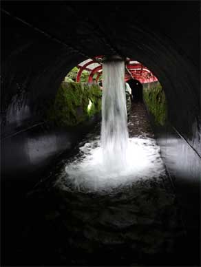 ものすごい勢いで鉄管から水路に水が届いていたのです。