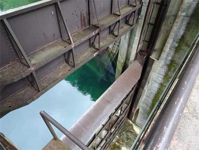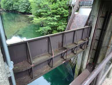 左岸側にある除塵機の横から堤体を見たところです。