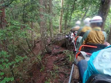 台車に伏せて手で進んでいかなくてはいけない