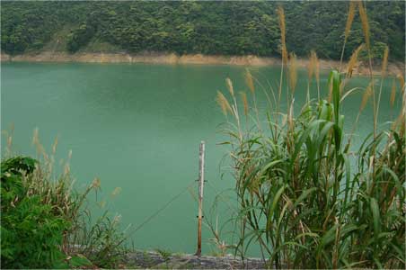 取水塔のあるあたりから上流をみるとやっぱり水位が低いなと思います。