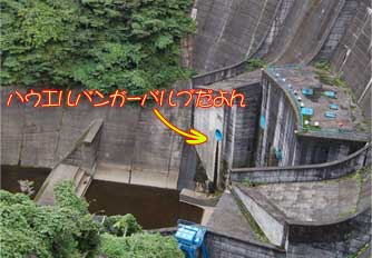 右岸側のスキージャンプ台の下にぽこんとあいているのがハウエルバンガーバルブ。