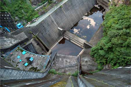 深い減勢工に向けてぎゅっと集まっているコンクリートの流れがよいですね♪