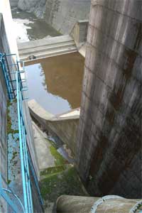 薄く減勢工にたまる水に空が映ってきれいだし。