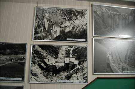 管理所の二階に上がる階段の横には建設当時の写真パネルも多数ありました。