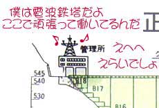 管理所の上で自慢げに腕を伸ばしている電波鉄塔が