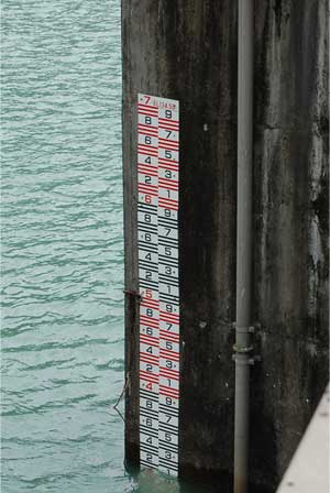 ゲート支柱に水位ゲージ発見。