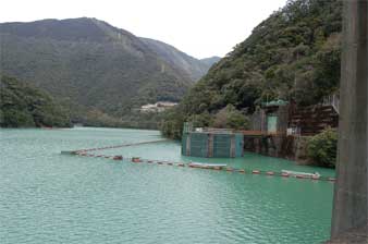 取水塔と網場が見えています。