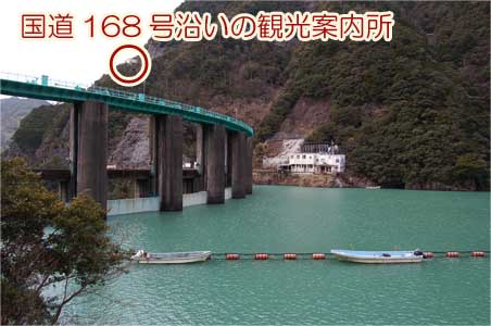 電源開発のダム建設で付け替えられた道路、国道168号はダムよりずっと高いところを通っています。