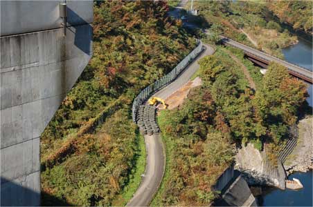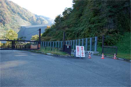 堤体に続く道はトンパックでふさがれていますので行くことはできません。