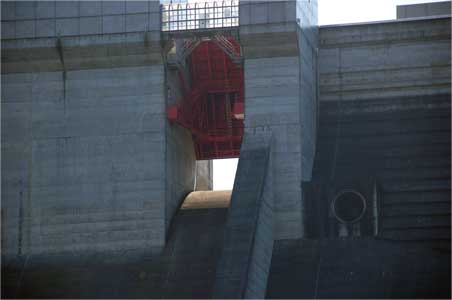 右岸下流の発電所のほうに続く橋に進ませてもらいました。