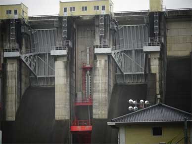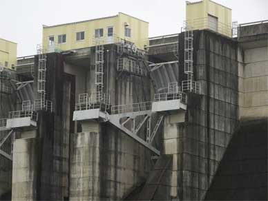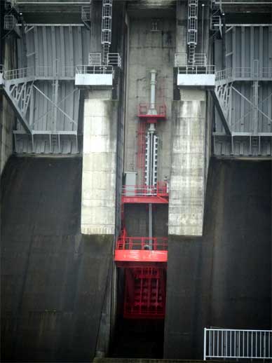 四角い部分は増設された低水位放流設備の制水ゲートの