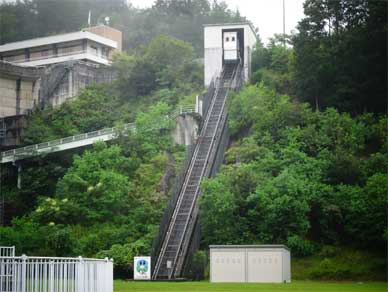 良く似たゴンドラがインクラインの上の格納庫にいますね。
