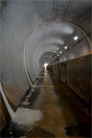 で、ゲートがぱかっと口を開いたらこのトンネルをお水がどばーっと流れていきます。