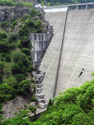 堤体下流面もカッコいいんですけどこの放水口のゲート設備もカッコいいんですよねー。