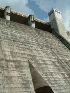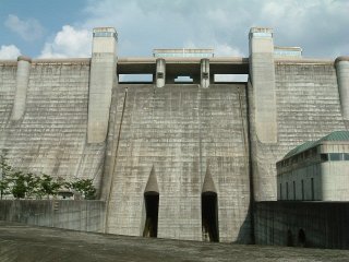 ダム湖側ある真中の塔は予備ゲート室。