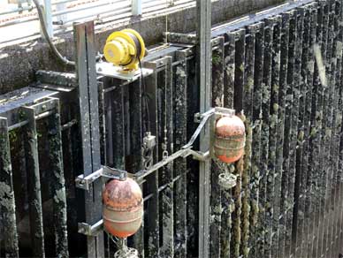 網場と目の細かいスクリーンでここが発電所への取水口だと一目でわかります。