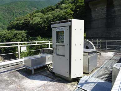 「水中スピーカーで鮎が嫌う音を出して取水口から遠ざけるものです」