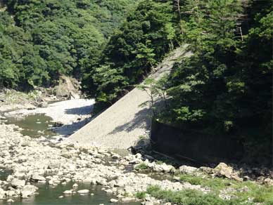 平鍋ダムは上流の崩壊地から雨のたび、大きな土石はともかく