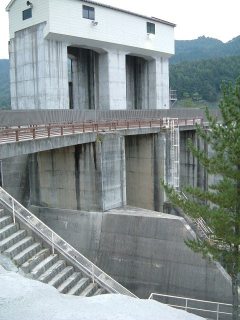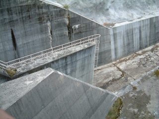 隔壁が一枚、常用洪水吐きのゲートから伸びています。