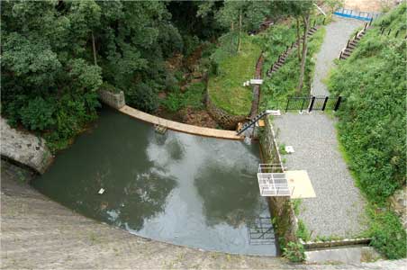 天端から副ダムと減勢池を見下ろしたところ。