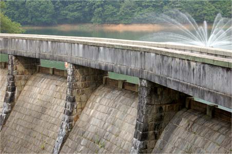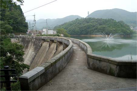 ダム湖には曝気装置兼用らしい噴水が。