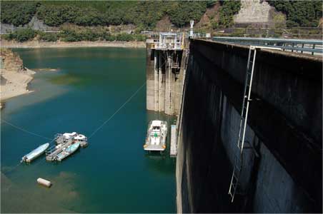 これは堤体に横づけされていた船で、ひとつせ丸という特殊作業船。