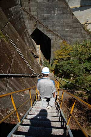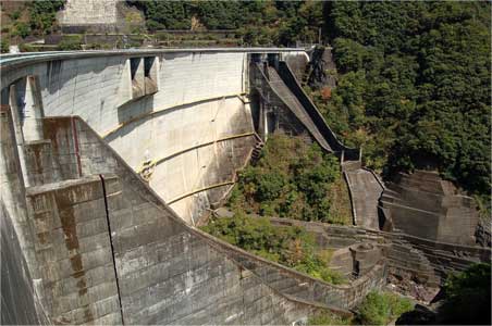 重力式ダムの足元に行く時に