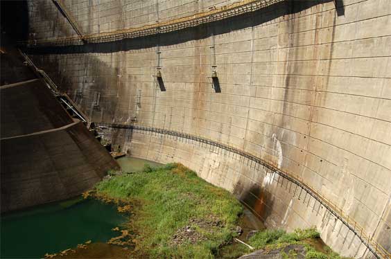 あまりに堤体が大きいのと中央部が白く乾いているせいで
