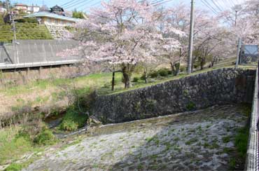 サラサラ越流と桜と石張りなんてもうフルセットの美しさなのに私の技術では撮れません。