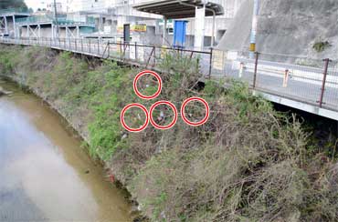 レイクパーク本庄の入口の橋から二河川を見ていて気になるものが目に飛び込んできました。
