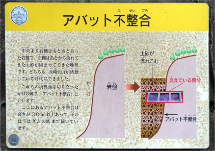 天端を右岸側に渡り切った時にアバットメントにこんな説明板を発見。