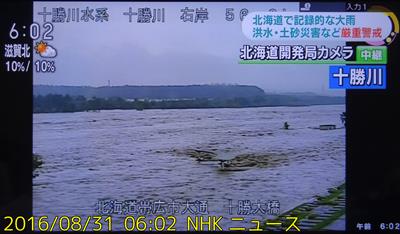 当時のTVニュース。十勝大橋からのカメラ映像です。