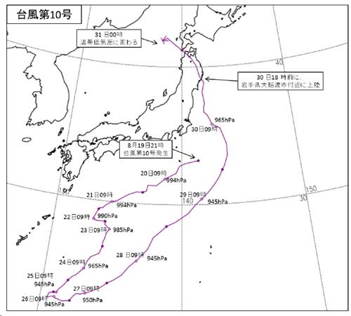 観測が始まってから初めて東北地方に太平洋側から上陸した変態台風です。