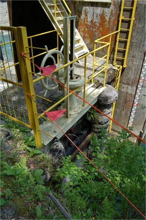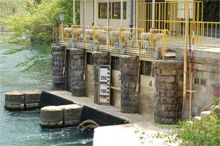 魚道に水を送っているスルースゲート上流面。