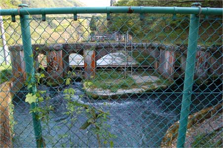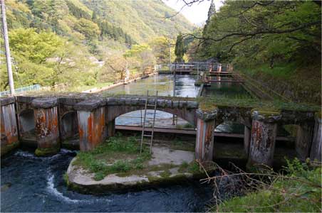 川上取水堰堤のすぐ下流にある沈砂池です。