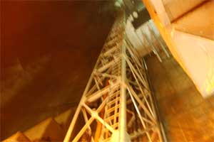 ダム下流側にある発電所と天端をつなぐこの通路で現役活躍のリヤカーです。