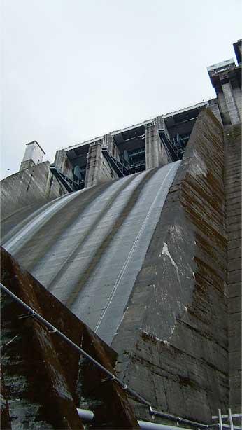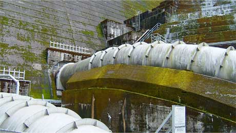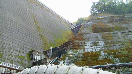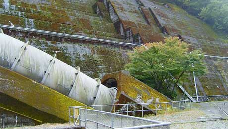 そして堤体から出てくる水圧鉄管。