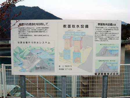 ダムの説明板は越流堤体の近くにいくつも立っています。