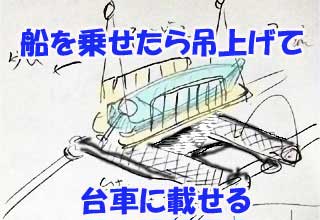「舟は昔から今のように台車に乗せて移動させていましたので