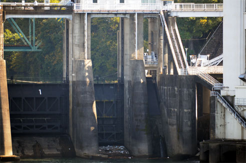 左岸のNo.1ゲートの横にあるのが一段低い排砂ゲート。