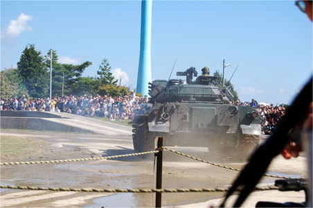 目の前を走り抜ける戦車。