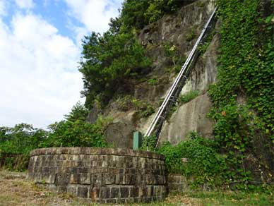 この井戸状の石造りの構造物からは導水管が出て山の上に伸びています。