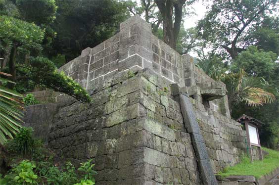忠義公の施設には現存するこのヘッドタンクの横にいくらかの落差を設けて