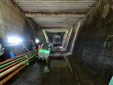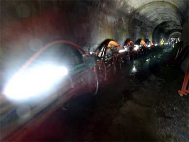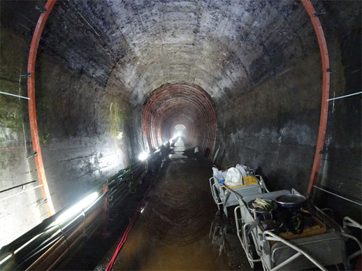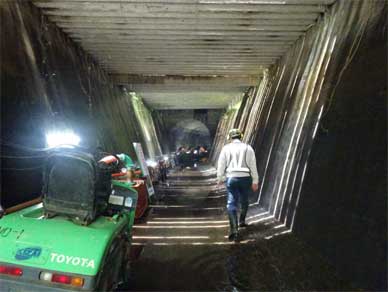 中部電力様の不動谷ダム見学時に真っ暗な水路トンネルを