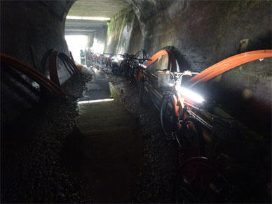 見学中にさっそうとトンネルの中から自転車に乗った方が次々と現れた時に
