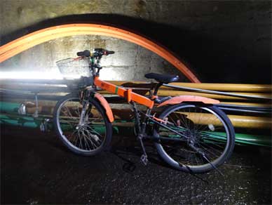 これで二か所目の水路トンネルと自転車の組み合わせですから