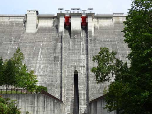 ダム軸がかなりの急角度で曲がっている“カド”で有名な