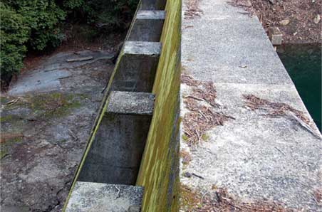 そして水通しには越流時の流塵が残っています。