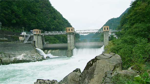 普段は堤体右岸の水路からと魚道からの水で河川維持用水を確保しているようです。