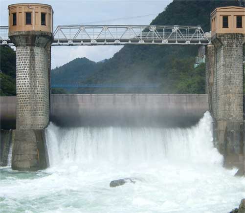 堤体左岸のコンクリート溝、流木路。